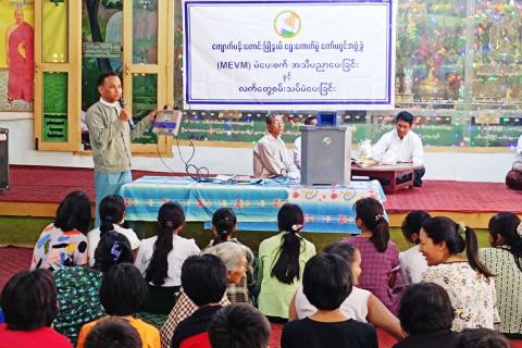 မင်္ဂလာတောင်ညွန့်မြို့နယ် ကူးတို့ဆိပ်ရပ်ကွက်တွင် မဲဆန္ဒရှင်ပြည်သူများအား မြန်မာအီလက်ထရောနစ်မဲပေးစက် (MEVM) ဆိုင်ရာ အသိပညာပေးခြင်းနှင့် လက်တွေ့စမ်းသပ်မဲပေးခြင်း ဆောင်ရွက်