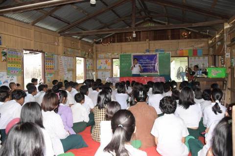 ဖြူးမြို့နယ် ကညင်မြှောင်ကျေးရွာ မူလတန်းလွန်ကျောင်း၌ လူငယ်ရေးရာ အသိပညာပေး ဟောပြော၍ စာဖတ်ရှိန်မြှင့်တင်ရေးဆောင်ရွက်