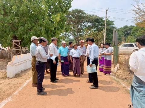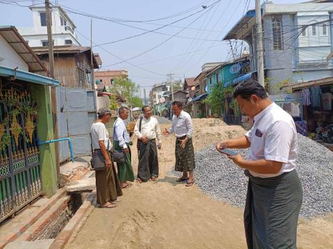 ပဲခူးတိုင်းဒေသကြီးအစိုးရအဖွဲ့ လမ်းပန်းဆက်သွယ်ရေးဝန်ကြီး ကျေးရွာများ ဂဝံခင်းခြင်းလုပ်ငန်း၊ ကတ္တရာလမ်းအား နိမ့်မြင့်ခြေညှိ၍ ကတ္တရာရေပိတ်လွှာလောင်းခြင်းများအား က…