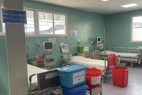 ပဲခူးပြည်သူ့ဆေးရုံကြီးတွင် အပူဒဏ်ရောဂါများဖြင့် လာရောက်ပြသသည့် လူနာများအား ကျန်းမာရေးစောင့်ရှောက်မှုပေးနိုင်ရန် ကုသပေးမည့်နေရာအား ကြိုတင်စီစဉ်ထားရှိ