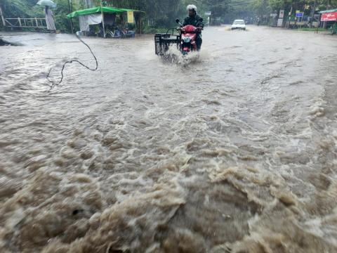 သန်လျင်မြို့၌ မိုးသည်းထန်စွာရွာသွန်းမှုကြောင့် အနိမ့်ပိုင်းရပ်ကွက်အချို့ ရေလျှံမှု ဖြစ်ပွား