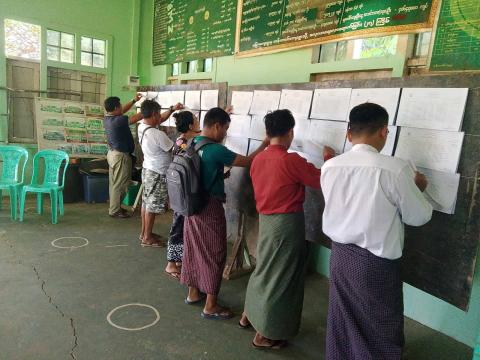ကွန်ဟိန်းမြို့၌ မဲစာရင်းများ တတိယအကြိမ် ကပ်ထားကြေညာခြင်းမပြုမီ မဲစာရင်းပြည့်စုံမှန်ကန်စေရေးအတွက် မဲဆန္ဒရှင်စာရင်းများ တိုက်ဆိုင်စစ်ဆေး