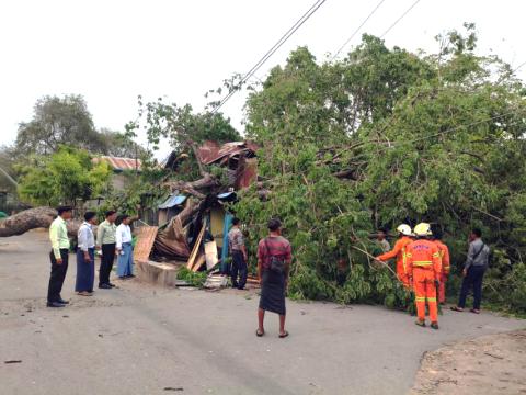 သာစည်မြို့နယ်၌ လေပြင်းတိုက်ခတ်ပြီး သစ်ပင်များလဲကျမှုများဖြစ်ပွားခဲ့ရာ ရှင်းလင်းခြင်းများ ဆောင်ရွက်