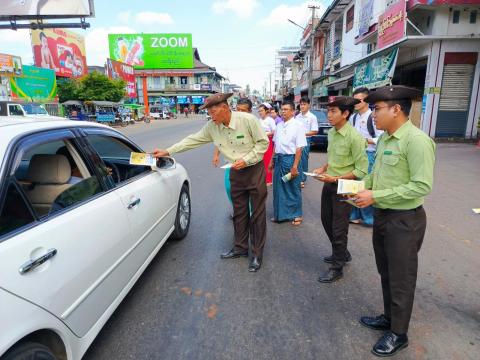 သထုံမြို့၊ ရန်ကုန်-မော်လမြိုင် အဝေးပြေးလမ်းမပေါ်၌ အပူဒဏ်အန္တရာယ်ကာကွယ်ရေး အသိပညာပေးလက်ကမ်းစာစောင်များ ဖြန့်ဝေ