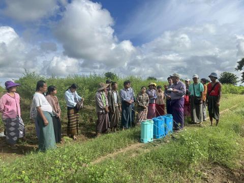 မန္တလေးတိုင်းဒေသကြီး၊ မိတ္ထီလာခရိုင်၊ မလှိုင်မြို့နယ် စိုက်ပျိုးရေးဦးစီးဌာနမှ ဝန်ထမ်းများက ပဲစင်းငုံသီးနှံ ပန်းတိုင်အထွက်နှုန်းရရှိစေရန် ရည်ရွယ်ကာ (ယူရီးယား+လက်ချား) ရွက်ဖျန်းအားဆေးရည်များ ထောက်ပံ့ပေးအပ်ခြင်းနှင့် အသိပညာပေးခြင်းလုပ်ငန်းများကို ယမန်နေ့နံနက်(၉)နာရီအချိန်က ကံကြီးကျေးရွာအုပ်စု၊ အလယ်ချောင်ကျေးရွာတွင် ပြုလုပ်ခဲ့ကြောင်း သိရသည်။