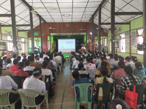 မိုင်းလုံမြို့ လူထုအခြေပြုဗဟိုဌာန (Community Centre) ခန်းမ၌ ကလေးကျန်းမာရေး အမေး အဖြေ ဆွေးနွေးပွဲဆောင်ရွက်
