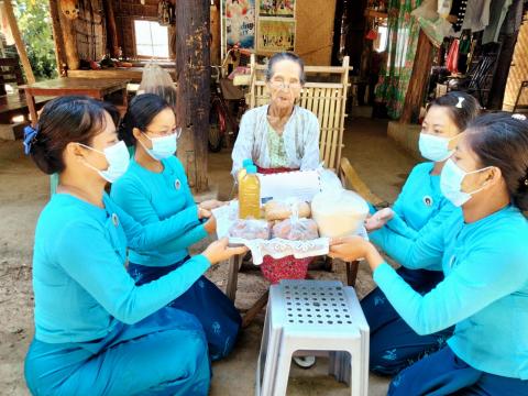 နတ်မောက်မြို့ ရန်အောင်မြင်ရပ်ကွက်ရှိ အသက် ၈၅ နှစ်နှင့် အထက်သက်ကြီးဘိုးဘွားများအား အခြေခံစားသောက်ကုန်နှင့်လူမှုရေးပင်စင်များထောက်ပံ့