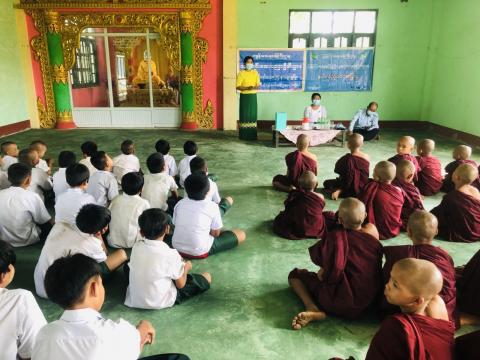 ဧရာဝတီတိုင်းဒေသကြီး၊ မအူပင်ခရိုင်၊ ဓနုဖြူမြို့နယ်၊ အောင်ချမ်းသာပရဟိတ ဘုန်းတော်ကြီးသင်ပညာရေး မူလတန်း(လွန်)ကျောင်း၊ ကျောင်းခန်းမ၌ လူငယ်ရေးရာ အသိပညာပေး ဟောပြောပွဲကို ယနေ့ မွန်းလွဲ(၁)နာရီ အချိန်က ကျင်းပပြုလုပ်ခဲ့သည်။