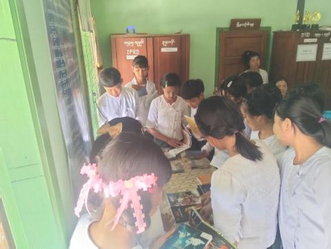 အခြေခံပညာမူလတန်းလွန်ကျောင်း(ရွာမ)၌ နယ်လှည့်စာကြည့်တိုက်လုပ်ငန်းများ ကွင်းဆင်းဆောင်ရွက်