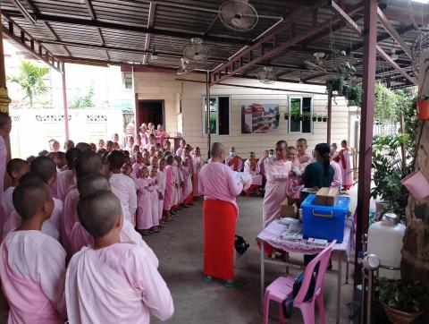 မန္တလေးတိုင်းဒေသကြီး၊ ပြည်ကြီးတံခွန်မြို့နယ်၊ တံခွန်တိုင်ရပ်ကွက်၊ ဗုဒ္ဓသာဝိကာသီလရှင် စာသင်တိုက်တွင် ကိုဗစ်-၁၉ ရောဂါကာကွယ်ဆေး ဒုတိယအကြိမ်ထိုးနှံ