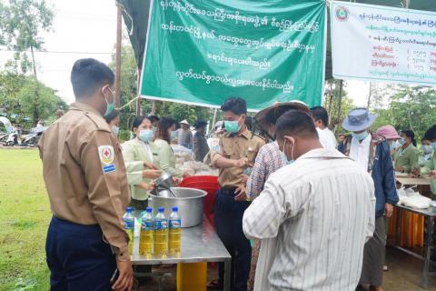 ရွှေကျင်မြို့နယ် သံဆိပ်ကျေးရွာတွင် တိုက်ပွဲဖြစ်ပွားမှုကြောင့် လာရောက်ရှောင်နေသူများအား အလှူရှင်များမှ လှူဒါန်းထောက်ပံ့ပေး