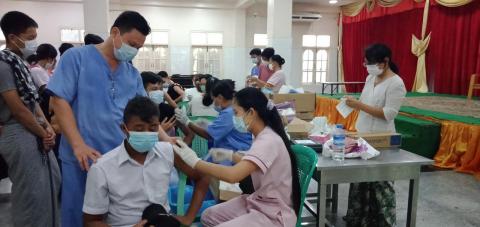 တောင်ဥက္ကလာပမြို့နယ်၌ ကျောင်းသား၊ ကျောင်းသူ (၈၄၀)ဦးအား ကိုဗစ်-၁၉ ရောဂါ ကာကွယ်ဆေး (Myancopharm) ပထမအကြိမ် ဆက်လက်ထိုးနှံပေး