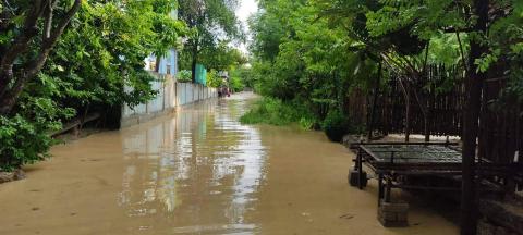 ပေါက်မြို့နယ်တွင် မိုးသည်းထန်စွာရွာသွန်းမှုကြောင့် လူနေအိမ်များအတွင်း ရေများဝင်ရောက်