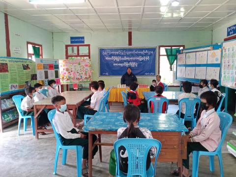 ပင်လုံမြို့လူထုအခြေပြုဗဟိုဌာန (Community Centre)ခန်းမ၌ စာဖတ်ရှိန်မြှင့်တင်ရေး ဟောပြောပွဲနှင့် ဆေးရောင်ခြယ်ပြိုင်ပွဲဆောင်ရွက်