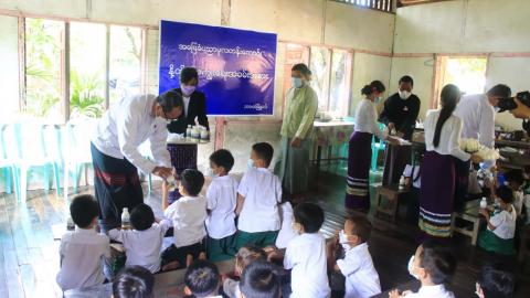 ကရင်ပြည်နယ်ဝန်ကြီးချုပ် အခြေခံပညာမူလတန်းအရွယ်ကျောင်းသား/သူများအား နွားနို့နှင့်ကြက်ဥတိုက်ကျွေး၊ ကိုဗစ်-၁၉ ရောဂါကာကွယ်ဆေး ထပ်ဆောင်းထိုးနှံခြင်းအား ကြည့်ရှုအားပ…