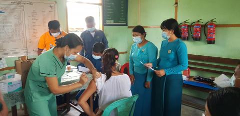 ကြံခင်းမြို့နယ် ရေနံတောင်ကျေးရွာတွင် အသက်(၁၈)နှစ်နှင့် အထက် ရဟန်း၊ သံဃာ၊ ပြည်သူများအား ကိုဗစ်-၁၉ ရောဂါ ကာကွယ်ဆေး ဒုတိယအကြိမ်ထိုးနှံ