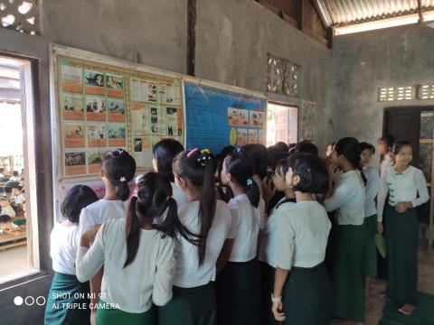 ဝါးခယ်မမြို့နယ် အ.ထ.က(ခွဲ) ကျန်းမာကုန်းကျောင်း၌ နယ်လှည့်စာကြည့်တိုက် နံရံကပ်စာစောင်နှင့် စာအုပ်စာစောင်ပြပွဲ ပြသ