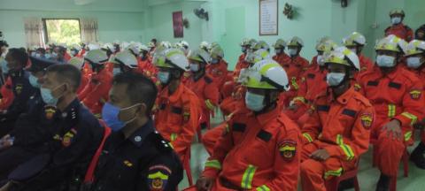 ရှမ်းပြည်နယ်(မြောက်ပိုင်း)၊ ကိုးကန့်ကိုယ်ပိုင်အုပ်ချုပ်ခွင့်ရဒေသ၊ လောက်ကိုင်မြို့ရှိ အရန်မီးသတ်တပ်ဖွဲ့ဝင်များကို သန္ဓေမီးသတ်တပ်ဖွဲ့ဝင်များနှင့်အတူ နိုင်ငံတော်အတွင်းရှိ ကုန်ထုတ်အရင်းအနှီးများကို မီးဘေးအန္တရာယ်မှ တားဆီးကာကွယ်ရေးလုပ်ငန်းစဉ်နှင့် သဘာဝဘေးအန္တရာယ်များ ကျရောက်သည့်အခါ အရေးပေါ်ရှာဖွေကယ်ဆယ်ခြင်း လုပ်ငန်းများတွင် နည်းစနစ်မှန်မှန် အချိတ်အဆက်မိမိ ကျွမ်းကျင်စွာပါဝင် ဆောင်ရွက်နိုင်စေရန်ရည်ရွယ်ပြီး အရန်မီးသတ်တပ်ဖွဲ့ဝင်များလေ့ကျင့်ရေး(မွမ်းမံ)သင်တန်းဖွင့်ပွဲ အခမ်းအနားကို ယနေ့နံနက် ၉ နာရီ အချိန်တွင် မြို့နယ်မီးသတ်ဦးစီးမှူးရုံးခန်းမဆောင်၌ ကျင်းပခဲ့သည်။