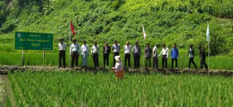 ရှမ်းပြည်နယ်(အရှေ့ပိုင်း)၊ “ဝ”ကိုယ်ပိုင်အုပ်ချုပ်ခွင့်တိုင်း၊ မက်မန်းခရိုင်၊ မက်မန်းမြို့နယ် စိုက်ပျိုးရေး ဦးစီးဌာနမှ အေးကျန့်အုပ်စု၊ နမ့်နန်းချောင်းရှိ SRI ပျိုးသက်နု စိုက်နည်းစနစ် စံပြစိုက်ကွက်တွင် DU 12 မျိုးစပါး စိုက်ပျိုးထားရှိမှု အခြေအနေကို ယမန်နေ့နံနက် ၁၀ နာရီက ကွင်းဆင်းကြည့်ရှု စစ်ဆေးခဲ့ကြသည်။