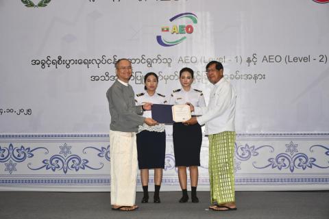 အခွင့်ရစီးပွားရေးလုပ်ငန်းဆောင်ရွက်သူ (Authorized Economic Operators – AEO) အသိအမှတ်ပြုလက်မှတ်ချီးမြှင့်ခြင်းအခမ်းအနား ကျင်းပ