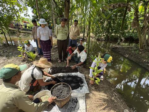 ဧရာဝတီတိုင်းဒေသကြီး၊ ဖျာပုံခရိုင်၊ ဖျာပုံမြို့နယ်အတွင်းရှိ တောင်သူများ ကော်ဖီသီးနှံ စိုက်ပျိုးခြင်းဖြင့် မိသားစုဝင်ငွေတိုးပွားစေရေး၊ သီးနှံစွမ်းအားတိုးတက်မြင့်မားလာစေရေး၊နှစ်ရှည်သီးပင်များကြားတွင် ကော်ဖီပင် ထည့်သွင်းစိုက်ပျိုးခြင်းဖြင့် မြေတစ်ယူနစ်ဧရိယာ တိုးတက်ကာ မြန်မာ့ကော်ဖီ ကမ္ဘာ့စျေးကွက်သို့ ထိုးဖောက်နိုင်စေရန်ရည်ရွယ်၍ ကော်ဖီပျိုးပင်များပေးအပ်ခြင်းနှင့် စုပေါင်းစိုက်ပျိုးခြင်းကို အောက်တိုဘာ ၁၃ ရက်နေ့ နံနက်ပိုင်းက ဖျာပုံမြို့နယ်၊ သလိပ်ကြီးကျေးရွာအုပ်စု၊ မယ်ညိုကျေးရွာ၊ ကွင်းအမှတ်(၄၅၆)၊ ဦးပိုင်အမှတ် ၂၅/၇ရှိ တောင်သူဦးမျိုးမြင့်၏ ဥယျာဥ်ခြံမြေတွင် ပြုလုပ်ခဲ့သည်။