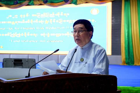 မကွေးတိုင်းဒေသကြီးဝန်ကြီးချုပ် ဦးတင့်လွင် အပြည်ပြည်ဆိုင်ရာ သဘာဝဘေးအန္တရာယ် ထိခိုက်ဆုံးရှုံးနိုင်ခြေ လျှော့ချရေးနေ့ အထိမ်းအမှတ်အခမ်းအနားသို့ တက်ရောက်