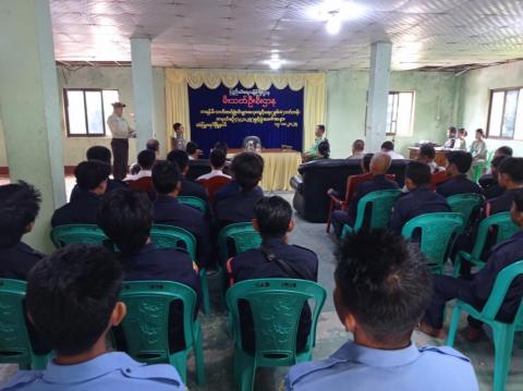 သံဖြူဇရပ်၌ အရန်မီးသတ်တပ်ဖွဲ့ဝင်များ လေ့ကျင့်ရေး(မွမ်းမံ) သင်တန်း (၁/၂၀၂၅) သင်တန်းဖွင့်ပွဲ အခမ်းအနားကျင်းပ