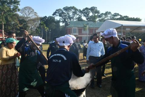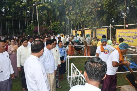 ရန်ကုန်တိုင်းဒေသကြီးအစိုးရအဖွဲ့ရုံး၌ မြန်မာ့ရိုးရာထမနဲထိုးပြိုင်ပွဲအခမ်းအနား ကျင်းပ