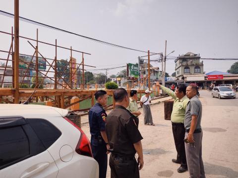 နမ့်စန်တွင် မြန်မာ့ရိုးရာမဟာသင်္ကြန်ပွဲတော် ကျင်းပမည့် ဗဟိုမဏ္ဍပ်နှင့် ရေကစားမဏ္ဍပ် တည်ဆောက်နေမှုအခြေအနေ ကွင်းဆင်းကြည့်ရှုစစ်ဆေး