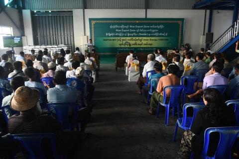 ရန်ကုန်တိုင်းဒေသကြီးအတွင်း Rice Export Zone စတင်ဆောင်ရွက်ခြင်း၊ Rice Export Zone တွင် ပါဝင်သော တောင်သူများအား စိုက်ပျိုးစရိတ်၊ Drum Seeder များ ပေးအပ်ခြင်းနှင့် MAPCO-MFI (တန် ၅၀၀)၊ ခေတ်မီဆန်စက်တွင် Solar Energy (1000 kW)ထုတ်လုပ်သုံးစွဲမှု အထိမ်းအမှတ် အခမ်းအနားကို ယမန်နေ့ နေ့လယ်ပိုင်းက ရန်ကုန်တိုင်းဒေသကြီး၊ မှော်ဘီခရိုင်၊ မှော်ဘီမြို့နယ်ရှိ တစ်နေ့ တန် (၅၀၀) ခေတ်မီဆန်စက်နှင့် သိုလှောင်ရုံတွင် ကျင်းပသည်။