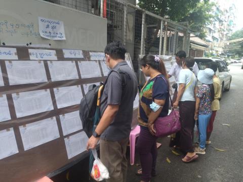 စမ်းချောင်းမြို့နယ်၌ မဲဆန္ဒရှင်စာရင်းများ ကြေညာထားခြင်းကို ပြည်သူများမှလာရောက်ကြည့်ရှု
