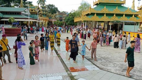 ဇလွန်မြို့ မာရ်အောင်မြင်ပြည်တော်ပြန်မြတ်စွာဘုရားကြီး၌ သီတင်းကျွတ်ရုံးပိတ်ရက်တွင် ဘုရားဖူးလာ ပြည်သူများဖြင့် စည်ကား