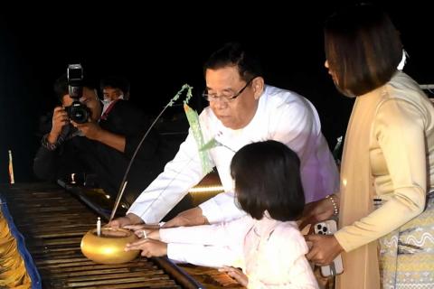 ရခိုင်ပြည်နယ်ဝန်ကြီးချုပ် ဦးထိန်လင်း သီတင်းကျွတ်ပွဲတော် သံဃာတော် အပါး(၅၀၀)တို့အား စုပေါင်းဆွမ်းဆန်တော် လောင်းလှူပွဲတက်ရောက်