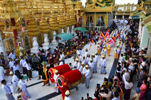 ပြည်မြို့ လေးဆူဓာတ်ပျော် ရွှေဆံတော်စေတီတော်မြတ်ကြီး ရင်ပြင်တော်၌ လက်ျာရစ် (၃)ကြိမ် ဗုဒ္ဓမြတ်စွယ်တော်လှည့်လည် အပူဇော်ခံပွဲကျင်းပ
