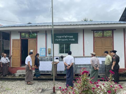 ဖျာပုံခရိုင် ရွေးကောက်ပွဲကော်မရှင်အဖွဲ့ခွဲဥက္ကဋ္ဌနှင့်အဖွဲ့ဝင်များ ကျိုက်လတ်မြို့နယ်တွင် ပထမအကြိမ်မဲစာရင်း ကြေညာထားရှိမှုအား ကြည့်ရှုစစ်ဆေး