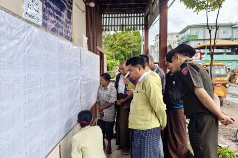 လောင်းလုံးမြို့နယ်၌ သက်ဆိုင်ရာ ရပ်ကွက်/ ကျေးရွာများတွင် မဲဆန္ဒရှင်စာရင်းများ ကပ်ထားကြေညာလျက်ရှိရာ ပြည်သူများလာရောက်ကြည့်ရှုလျက်ရှိ