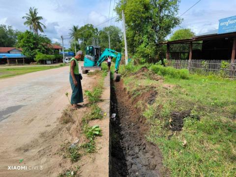နတ်မောက်မြို့နယ် စည်ပင်သာယာရေးအဖွဲ့မှ မြစည်းခုံလမ်းနှင့်လမ်းမတော်လမ်းတို့၌ ရေစီးရေလာကောင်းမွန်ရေး မြေသားရေမြောင်းတူးဖော်ပေး