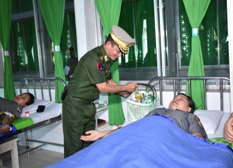 (၆၁) နှစ်မြောက် မြန်မာနိုင်းငံရဲတပ်ဖွဲ့နေ့ကို ကြိုဆိုဂုဏ်ပြုသောအားဖြင့် မြစ်ကြီးနားမြို့ အမှတ် (၁) တပ်မတော်ဆေးရုံ (ကုတင်-၃၀၀) ၌ စုပေါင်းသွေးလှူဒါန်း