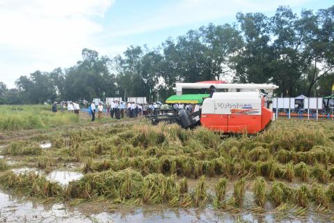 ၂၀၂၅-၂၀၂၆ ခုနှစ် မိုးစပါးစံပြကွက်ရိတ်သိမ်းပွဲ တောင်သူများသို့ နေကြာမျိုးစေ့များနှင့် Drum Seeder များ ဖြန့်ဖြူးပေးအပ်ပွဲ အခမ်းအနားကို ယမန်နေ့နံနက်ပိုင်းက ရန်ကုန်တိုင်းဒေသကြီး၊ မှော်ဘီမြို့နယ်၊ ညောင်ကုန်းကျေးရွာ တောင်သူ ဒေါ်အေးအေးပိုင်၏ လယ်တွင် ကျင်းပသည်။