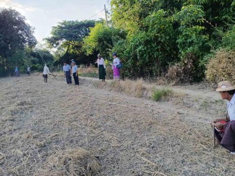 တိုက်ကြီးမြို့နယ်၌ ကျေးရွာကုန်ထုတ်လမ်း ဖောက်လုပ်ရန်အတွက် အကြိုကွင်းဆင်းတိုင်းတာ စစ်ဆေး