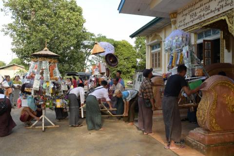 ပဲခူးတိုင်းဒေသကြီး၊ တောင်ငူခရိုင်၊ တောင်ငူမြို့နယ် အထွေထွေအုပ်ချုပ်ရေးဦးစီးဌာန၊ ဝန်ထမ်းမိသားစုများ၊ ရပ်/ကျေး အုပ်ချုပ်ရေးမှူးများနှင့် (၇) ရက်သားသမီးများ၏ စုပေါင်းမဟာဘုံကထိန် အလှူတော်အခမ်းအနားကို ယနေ့နံနက်ပိုင်းက မိုးကောင်းကျေးရွာအုပ်စု၊ အင်းဝိုင်းကျေးရွာရှိ ရွှေရတနာကျောင်းတွင် ကျင်းပသည်။