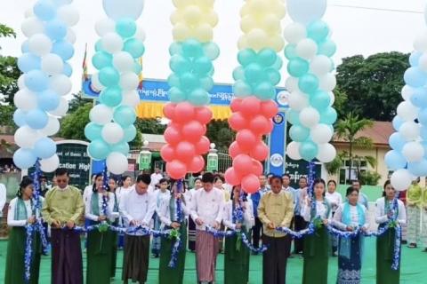 ပဲခူးတိုင်းဒေသကြီး၊ ပဲခူးခရိုင်၊ သနပ်ပင်မြို့ အခြေခံပညာအထက်တန်းကျောင်း (သနပ်ပင်)၌ စာကြည့်တိုက်များ ဖွံ့ဖြိုးတိုးတက်ရေးနှင့် စာဖတ်ရှိန်မြှင့်တင်ရေးအခမ်းအနားအား ယနေ့နံနက်ပိုင်းက ကျင်းပရာ ပဲခူးတိုင်းဒေသကြီးလူမှုရေးရာဝန်ကြီး ဦးမျိုးအောင် တက်ရောက်ချီးမြှင့်သည်။