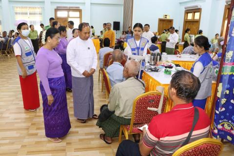 စစ်ကိုင်းတိုင်းဒေသကြီး ဝန်ကြီးချုပ် ဦးမြတ်ကျော် တိုင်းဒေသကြီးအတွင်းရှိ အငြိမ်းစားဝန်ထမ်းများအား ကျန်းမာရေးစစ်ဆေးပေးခြင်းနှင့် အခြေခံစားသောက်ကုန်များ ပေးအပ်ခြင…