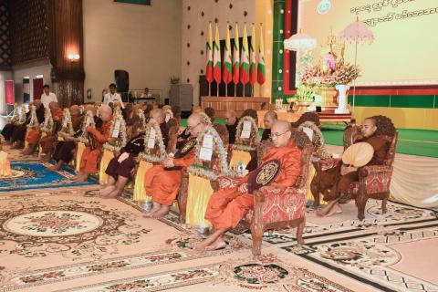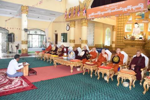 ရန်ကုန်တိုင်းဒေသကြီးအစိုးရအဖွဲ့ရုံး၊ မင်္ဂလာခန်းမ၌ ကျင်းပပြုလုပ်သော ရန်ကုန်တိုင်းဒေသကြီးအစိုးရ အဖွဲ့၏စုပေါင်းမဟာဘုံကထိန် အလှူတော်မင်္ဂလာ အခမ်းအနားကျင်းပ