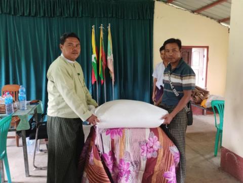 ငရုတ်ကောင်းမြို့၊ တင်းချောင်းကျေးရွာအုပ်စုတွင် ယာယီနေရပ်စွန့်ခွာ ပြည်သူများအား ဆန်အိတ်များ ပေးအပ်