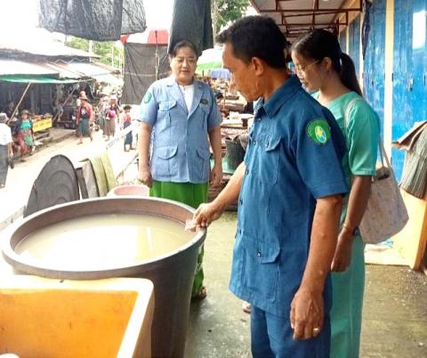 ကန်ကြီးထောင့်မြို့နယ်၊မြို့မစျေး၌ သွေးလွန်တုပ်ကွေးရောဂါကြိုတင်ကာကွယ်ရေး Abate (အဘိတ်)ဆေးခတ်ခြင်းနှင့် ဖုံး၊ သွန်၊ လဲ၊ စစ်ခြင်းလုပ်ငန်းများ ဆောင်ရွက်