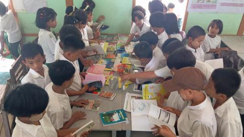 သံတောင်ကြီးမြို့နယ် အခြေခံပညာအထက်တန်းကျောင်းတွင် စာဖတ်ရှိန်မြှင့်တင်ရေးအတွက် ကျောင်းသူ/ကျောင်းသားများထံသို့ စာအုပ်စာစောင်များ ငှားရမ်းပေး