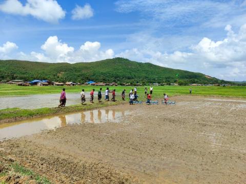 ပေါင်မြို့နယ်၌ စပါးမျိုးစေ့ချကိရိယာ (Seeder) ဖြင့် လက်တွေ့အစေ့ချစိုက်ပျိုးပြသခြင်း ဆောင်ရွက်