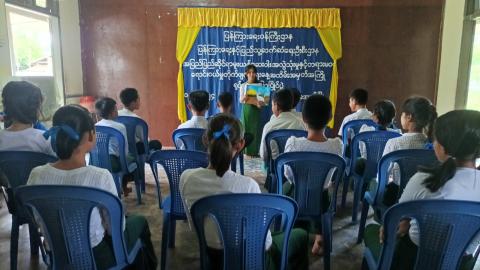 ကျိုက်ထိုမြို့ မူလွန်အောင်မင်္ဂလာ-၂ ကျောင်း၌ မူးယစ်ဆေးဝါးအန္တရာယ် အသိပညာပေးဟောပြောပွဲနှင့် နံရံကပ်စာစောင်ပြပွဲပြုလုပ်