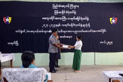 သရက်မြို့၌ ၂၀၂၄-၂၀၂၅ ခုနှစ်၊ သရက်ခရိုင် ရဲတပ်ဖွဲ့မှူးရုံးရှိ တပ်ဖွဲ့ဝင်/စာရေးဝန်းထမ်းများ၏ သားသမီးများအား ပညာသင်ထောက်ပံ့ပေးအပ်ခြင်း အခမ်းအနားကျင်းပ